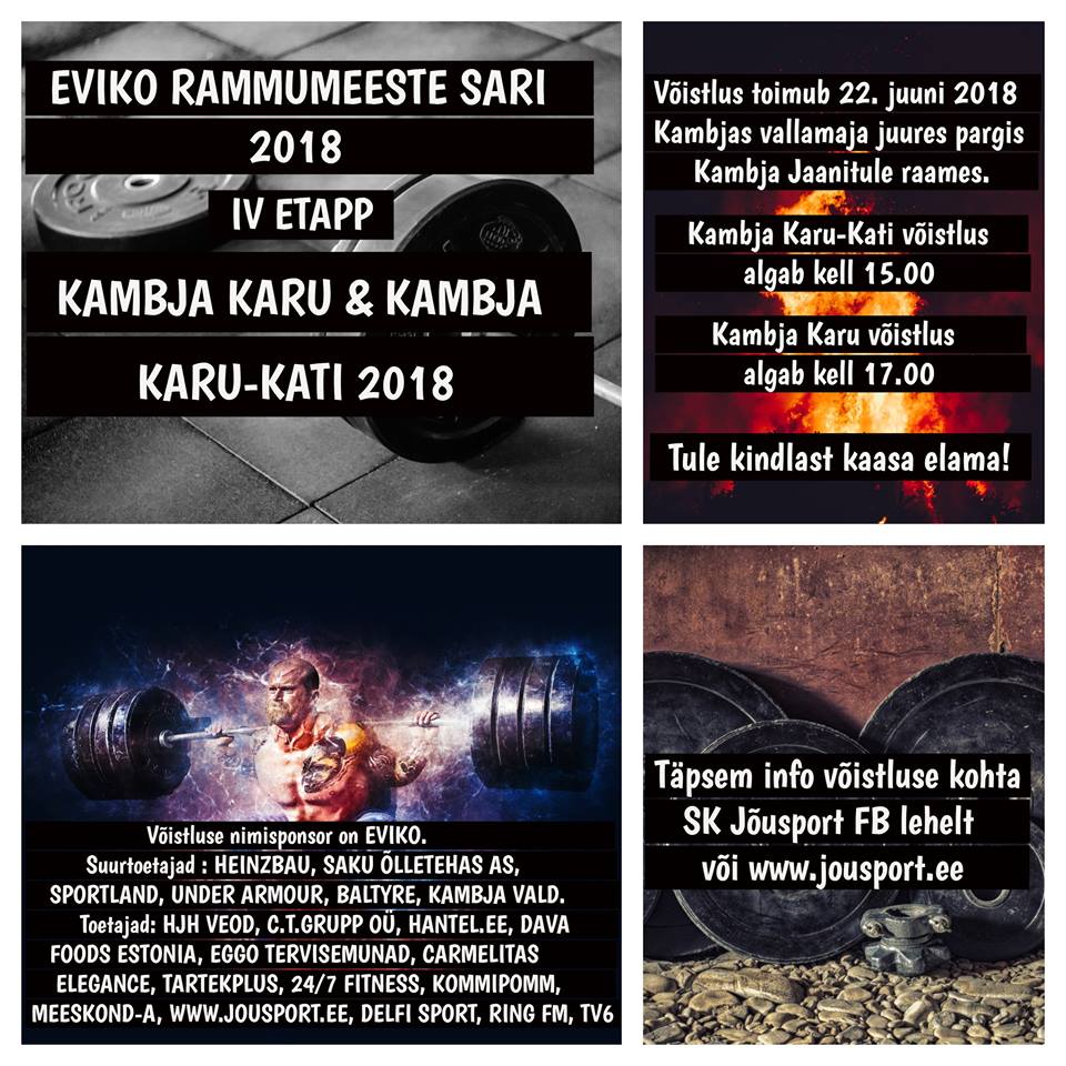 Reedel, 22. juunil toimub Kambjas vallamaja taga pargis EVIKO Rammumeeste Sarja järjekordne etapp. Kell 15.00 algab Kambja Karu-Kati 2018 võistlus, mis on naistele sarja III etapp. Kell 17.00 algab Kambja Karu 2018 võistlus, mis on meestele sarja IV etapp.