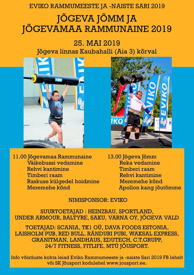 EVIKO Rammumeeste ja -naiste Sari 2019 jätkub 25.05.2019 Jõgeva linnas Jõgeva 81. sünnipäeva pidustustel oma teise etapiga! Selgitatakse välja Jõgeva Jõmm 2019 ja Jõgevamaa Rammunaine 2019 🙂
